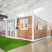 منازل حاويات خشبية قابلة للتوسيع بتصميم عملي مقاومة للطقس تركيب سريع للمكاتب والمتاجر والفنادق والحمام 20 قدمًا و 40 قدمًا